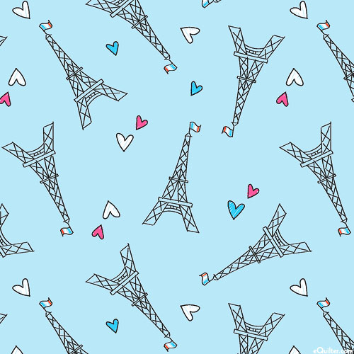 Benartex Fabrics Parisian Pups - Eiffel Tower - Dawn Blue