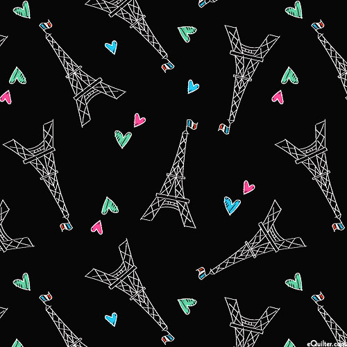 Benartex Fabrics Parisian Pups - Eiffel Tower - Black