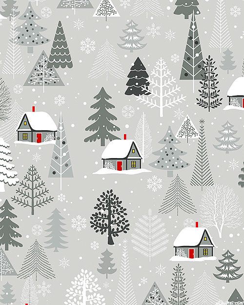 Taller trees are about 1-3/4", with pearlescent, from the 'Nordic Cabin' collection by Cherry Guidry for Benartex Fabrics.