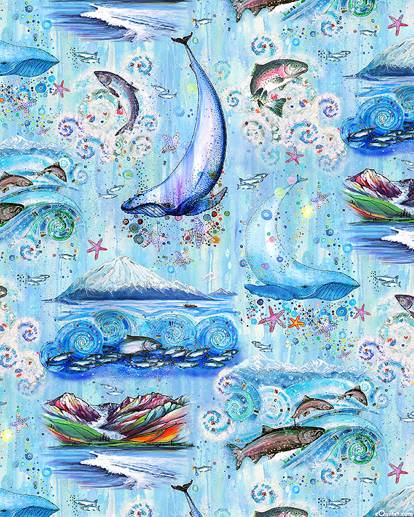 Take a dive beneath the waves and experience the whimsical wonderland home to the majestic creatures of the sea. Larger whales are about 6", from the 'Wild Waters' collection by Dawn Gerety by arrangement with Ansada Licensing Group, LLC for P&B Textiles.