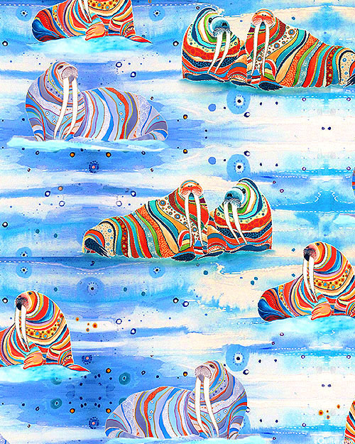 Multicolored walruses lounge on ice floes as they keep warm together amidst the biting cold. Larger walruses are about 3-1/2", from the 'Wild Waters' collection by Dawn Gerety by arrangement with Ansada Licensing Group, LLC for P&B Textiles.