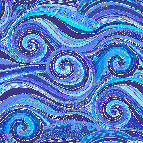 Torrential whorls of color and shadow coalesce in powerful waves that roil and churn into dazzling displays of natures beauty. Larger spirals are about 2-1/4", from the 'Wild Waters' collection by Dawn Gerety by arrangement with Ansada Licensing Group, LLC for P&B Textiles.