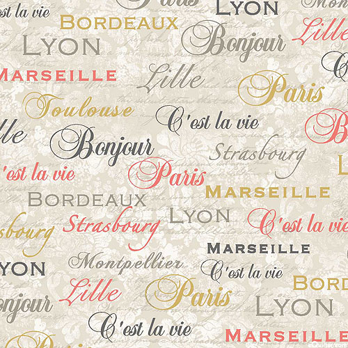 Larger letters are about 1/2" tall, from the 'C'est La Vie Words Ecru' collection by Paintbrush Studio for Fabri-Quilt.