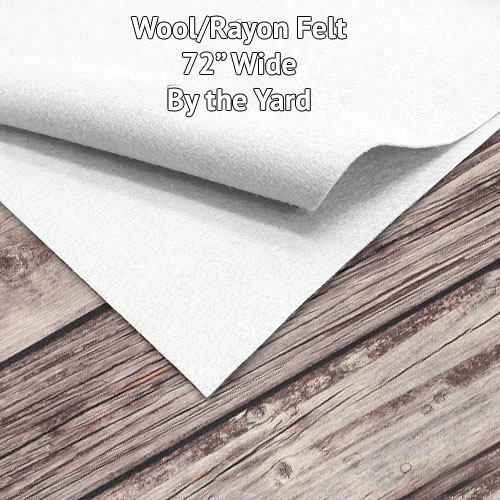 WoolFelt® is stocked for SAQA and art quilters as a specialty batting product, renowned for it's all-natural heirloom quality. Art quilters use it for wall hangings as a batting substitute, because it is resilient, durable and it won't crease. It is easy to cut, handle, and sew and it can be dry cleaned. 35% Wool / 65% Rayon Felt (TOY002), 72" wide, sold by the yard. Made in USA by National Nonwovens. Please note: This product will be rolled and may possibly be folded for shipping. It is very forgiving and the folds will relax very quickly. Remove from packaging immediately upon receipt and lay flat or store in a roll. Minimum 1 yard order.