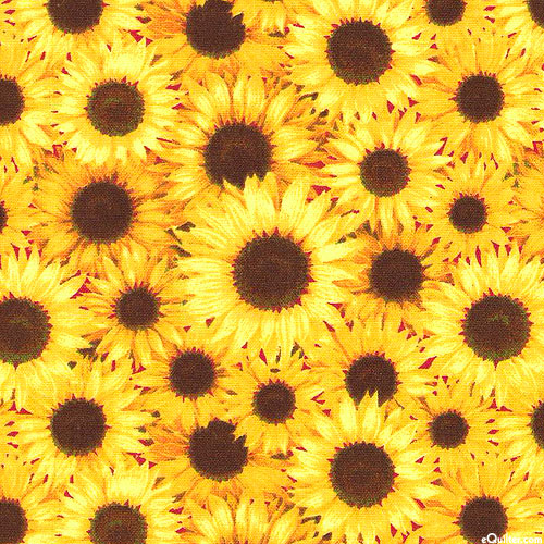 Packed sunflowers decorate the surface of this bright & happy fabric! Larger sunflowers are about 2", 'Packed Sunflowers' by Fabric Traditions.