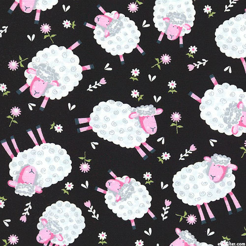 Adorable sheep are seen frolicking together across a flowery field in this children's design. Larger sheep are about 2-1/4".