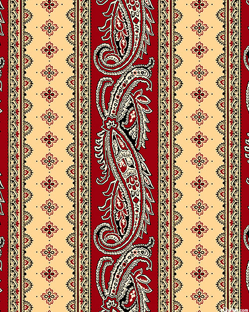 In a style reminiscent of antique wallpaper, curling fronds and flowery medallions lend a regal elegance to this charming print. Digitally printed, wider stripes are about 2-1/4", stripes run the length of the fabric, from the 'Oxford Archival' collection by Quilting Treasures.