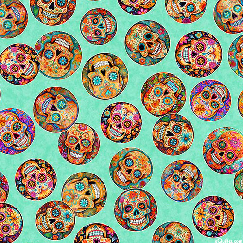 Quilting Treasures Skullduggery - Skull Medallions - Seaglass - 36" x 44" PANEL