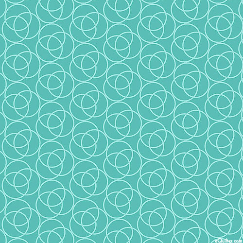 Venn diagram shapes emerge from trios of overlapping rings in this charming blender. Circles are about 3/8", from the 'Whimsy II' collection by Heather Dutton of Hang Tight Studio for P&B Textiles.