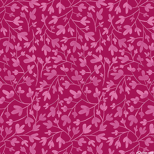 Leafy branches are tossed against a solid background in this simple and charming blender. Larger leaves are about 1/4", from the 'Whimsy II' collection by Heather Dutton of Hang Tight Studio for P&B Textiles.