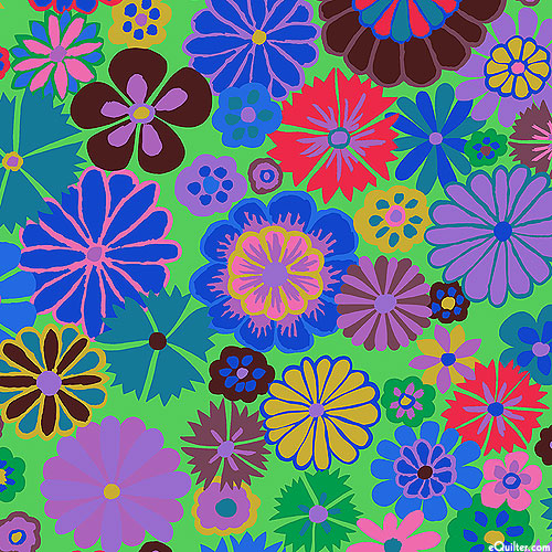A lush landscape of flourishing flowers coalesce to create a captivating garden gala of texture and tone. Larger flowers are about 3-1/2", 'Folk Flower' from the 'August 2024 Kaffe Fassett Collective' collection by Kaffe Fassett for Free Spirit.