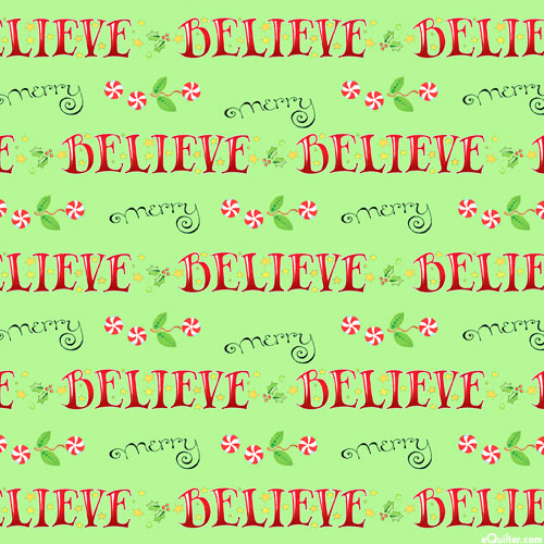 Believe in yourself and make merry with this fun and festive Christmas-themed design! Taller text is about 1/2", 'Believe and Merry' from the 'So Much Joy!' collection by Mary Engelbreit for Free Spirit.