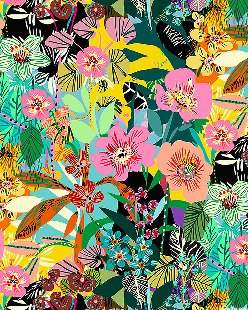 A lush landscape of flourishing flowers coalesce to create a captivating garden gala of texture and tone. Larger flowers are about 2-1/4", 'Flower Garden' from the 'Vibrant Botanica' collection by Kitty McCall for Free Spirit.