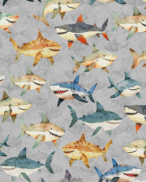 Quilting Treasures Deep Sea Dazzle - Happy Sharks - Ash Gray