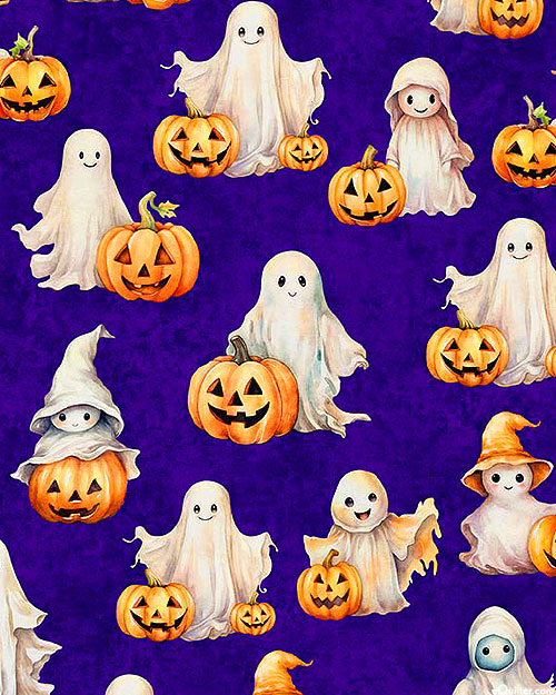 Quilting Treasures QT Cuties - Ghostly Pumpkin Patch - Violet