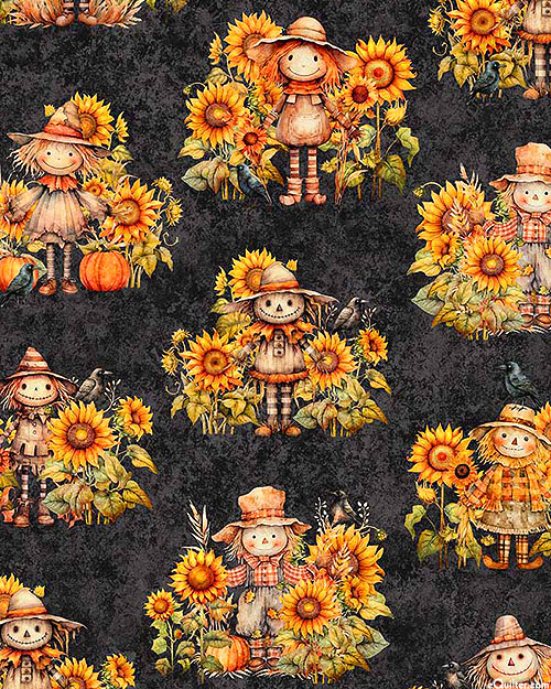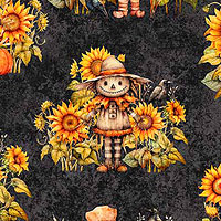 Cute scarecrows placed in a garden of pumpkins and sunflowers lend an Autumnal allure to this happy harvest-themed design. Digitally printed, larger scenes are about 3-1/2", from the 'QT Cuties' collection by Dan Morris for Quilting Treasures.