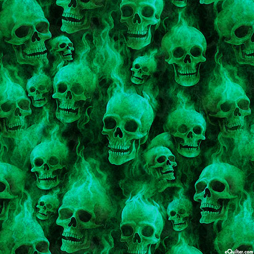 Quilting Treasures Gotta Have It - Flaming Skulls - Mantis Green