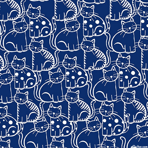 Quilting Treasures Meow Meow Meow - Cute & Cuddly - Dk Navy