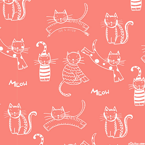 Cute kitties of all shapes and sizes stand out against a solid background. Digitally printed, larger cats are about 2-1/2", from 'Meow Meow Meow' collection by Ink & Arrow for Quilting Treasures.