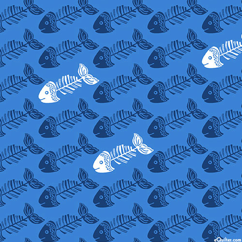 Quilting Treasures Meow Meow Meow - Fish Bones - Royal Blue