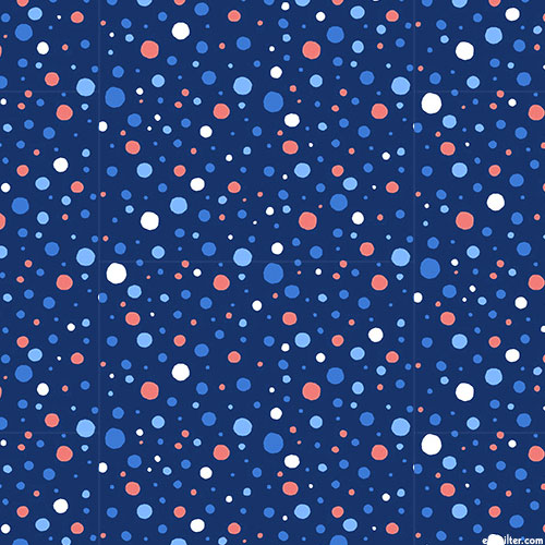 Colorful polka dots rain atop a solid background lending a whimsical charm to the design. Digitally printed, larger dots are about 1/4", from 'Meow Meow Meow' collection by Ink & Arrow for Quilting Treasures.
