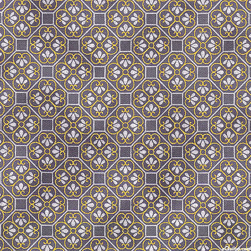 Kaufman Fabrics Honoka - Medallion Tiles - Storm Gray/Gold