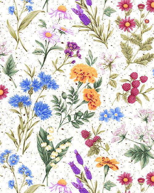 A lush landscape of flourishing flowers coalesce to create a captivating garden gala of texture and tone. Digitally printed, larger floral stems are about 4", from the 'Flowerhouse: Botanical Garden' collection by Debbie Beaves for Robert Kaufman Fabrics.