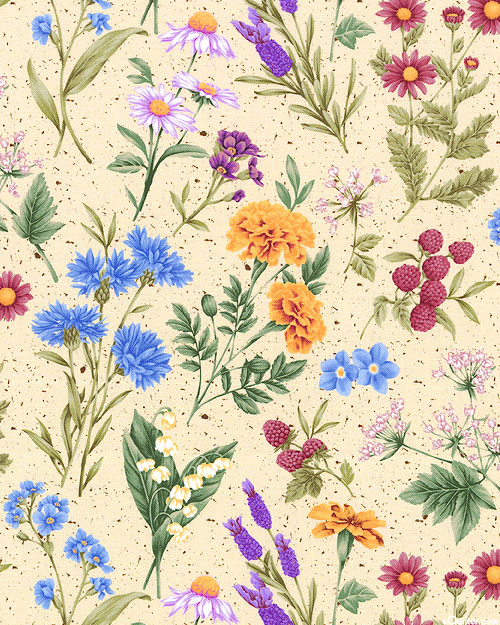 Kaufman Fabrics Botanical Garden - Tossed Blossoms - Almond Beige