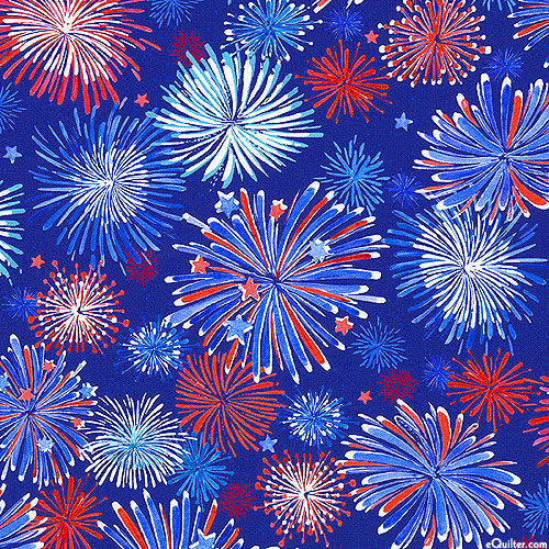 Fireworks burst into bright colors across the sky in this proudly patriotic design. Digitally printed, larger fireworks bursts 3-1/2", from the 'Independence Day' collection by Elena Vladykina for Robert Kaufman Fabrics.