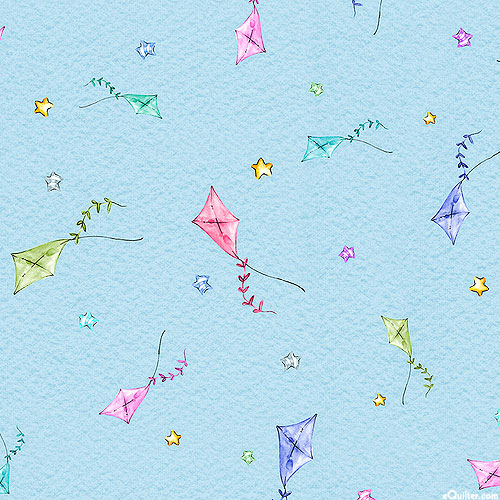 Colorful kites are seeing soaring high in the sky as twinkling stars shimmer in the distance. Larger kites are about 2", from the 'Whiskerville' collection by Sillier than Sally for P&B Textiles.