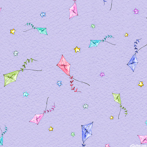 Colorful kites are seeing soaring high in the sky as twinkling stars shimmer in the distance. Larger kites are about 2", from the 'Whiskerville' collection by Sillier than Sally for P&B Textiles.