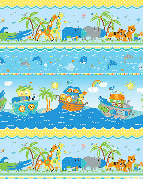 All of the animals of the world gather merrily together and ride, 2 by 2, on Noah's Ark. Wider stripes are about 4-1/2", stripes run the length of the fabric, 'Noah's Journey Stripe' from the 'Noah's Journey' collection by Kanvas Studio for Benartex Fabrics.