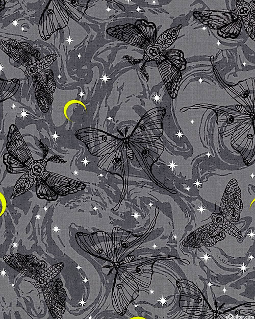 Larger moths are about 3", from the 'Phantasm' collection by Libs Elliott for Andover Fabrics.