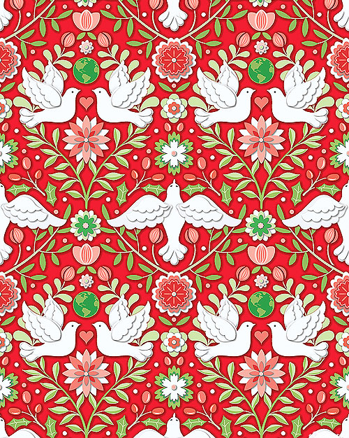 Benartex Fabrics Peace On Earth - Winter Doves - Scarlet