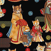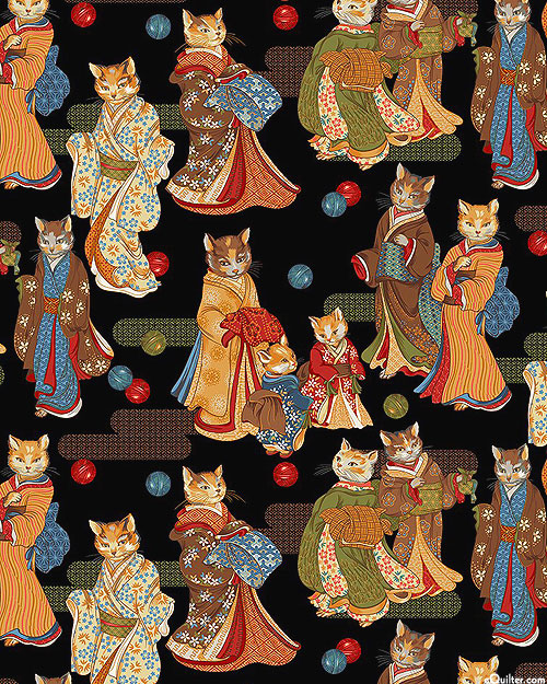 An adorable cast of kitties dressed in traditional kimonos lend an Asian allure to this cute and cuddly print. Digitally printed, taller cats are about 5-1/4", 'Ginza Whiskers' from the 'Tokyo Fur-Tales' collection by Michael Miller Fabrics.