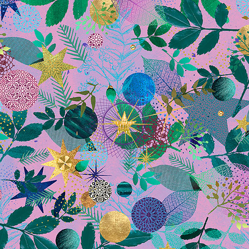Larger leaves are about 2", with gold metallic, from the 'Holy Night' collection by Lynn Horrabin for Robert Kaufman Fabrics.