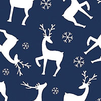 Silhouetted of reindeer and snowflakes scattered across the design lend a festive flair to this cheery Christmas-themed design. Larger deer are about 1-1/2", with pearlescent, from the 'Nordic Cabin' collection by Cherry Guidry for Benartex Fabrics.