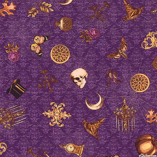 Kaufman Fabrics Dreadful Delights - Halloween Motifs - Eggplant Purple