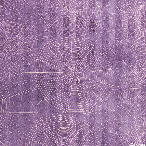 A subtle stripe is articulated by mottled textures and spooky spiderwebs in this fun and festive Halloween-themed tonal. Digitally printed, larger spiderwebs are about 4", from the 'Dreadful Delights' collection by Robert Kaufman Fabrics.