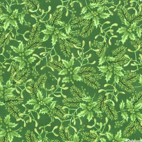 Kaufman Fabrics Festive Finery - Holly Sprigs - Evergreen/Gold