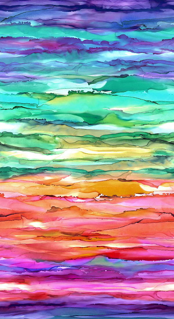 A lush palette of vividly variegated hues washes over this striped design like waves that gently ebb and flow with the passing tide. Digitally printed, 108" quilt backing, wider stripes are about 2-1/2", stripes run the length of the fabric, from the 'Dragonfly Dance' collection by Deborah Edwards and Melanie Samra for Northcott Fabrics.