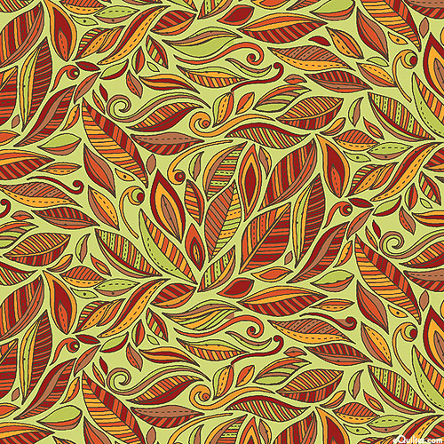 Herbs and leaves are tossed across this happy harvest design. Larger leaves are about 1-1/4", 'Spice Swirl' from the 'Pumpkin and Spice' collection by Valentina Harper for Benartex Fabrics.