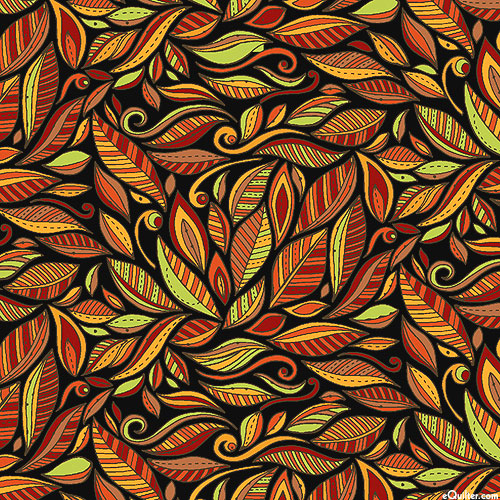 Benartex Fabrics Pumpkin and Spice- Leafy Toss - Black