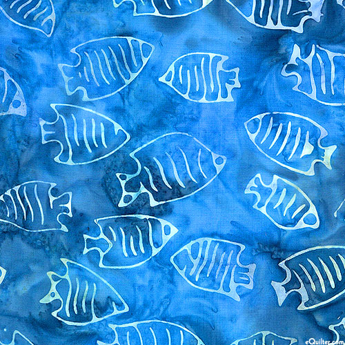 Benartex Fabrics Bali Under The Sea - Angelfish Batik - Ocean Blue