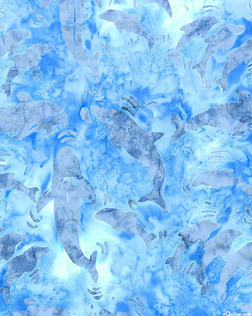 Benartex Fabrics Bali Under The Sea - Dolphins Batik - Powder Blue
