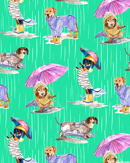 Michael Miller Fabrics Paws In The Rain - Dogs In The Rain - Dk Mint