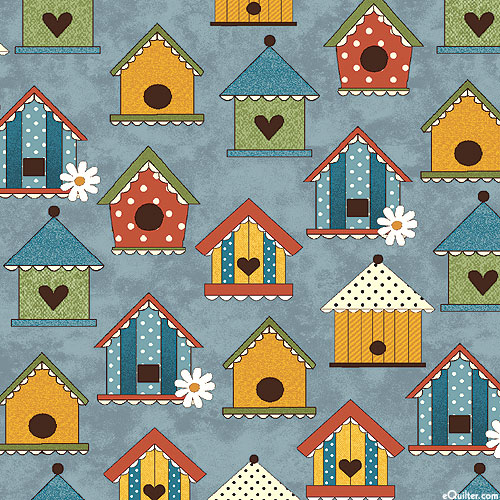 Benartex Fabrics Prairie Chicks - Tweet House - Steel Blue