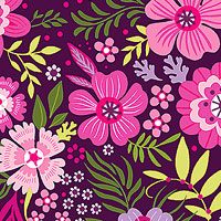 Leaf Green, Orchid, Raspberry & Candy Pink, Iris & Aubergine Purple