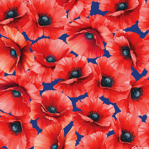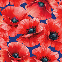 Elegant poppy blossoms are scattered against a solid background bringing a dynamic and energetic contrast to the design. Larger flowers are about 2-1/4", 'Poppy Celebration' from the 'Red, White & Sweet' collection by Nicole DeCamp for Benartex Fabrics.