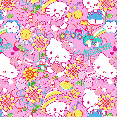 Sanrio's iconic Hello Kitty is seen gardening and frolicking in the sunshine across this nostalgic print. Larger characters are about 3", 'Hello Kitty Garden Doodle' from the 'Hello Kitty' collection by Sanrio for Springs. This product is intended for home use only, not for manufacturing.